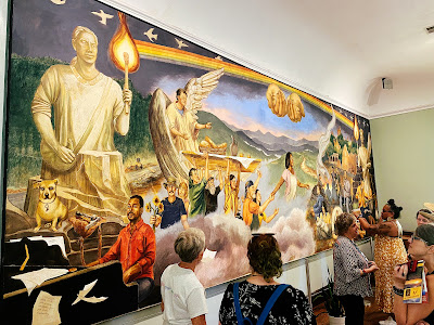 I was fortunate to work at UNCA, with some great local educators this last week on the Haywood Street Fresco Project.  We gathered for a week to create lessons and content around the (pretty amazing) fresco at the Haywood Street Congregation in downtown Asheville.  This fresco was created by Christopher Holt in September 2019 and is one of very few examples surviving of this Italian Renaissance technique of "painting with plaster."  Based on the beatitudes, but using local Asheville people and landmarks - this fresco was created to bring life to idea that a community must be judged by how it treats its most disadvantaged citizens.